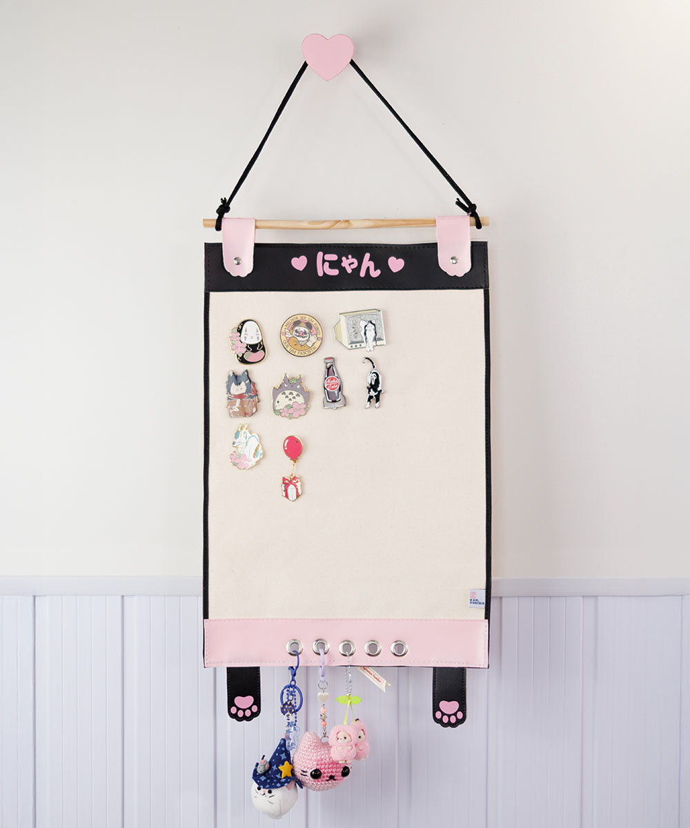 Essa bandeira decorativa foi feita para você expor seus pins, bottons e chaveiros enquanto não está os usando. Possui design com detalhe de couro sintético, personalizado, temático da gerente. ✨