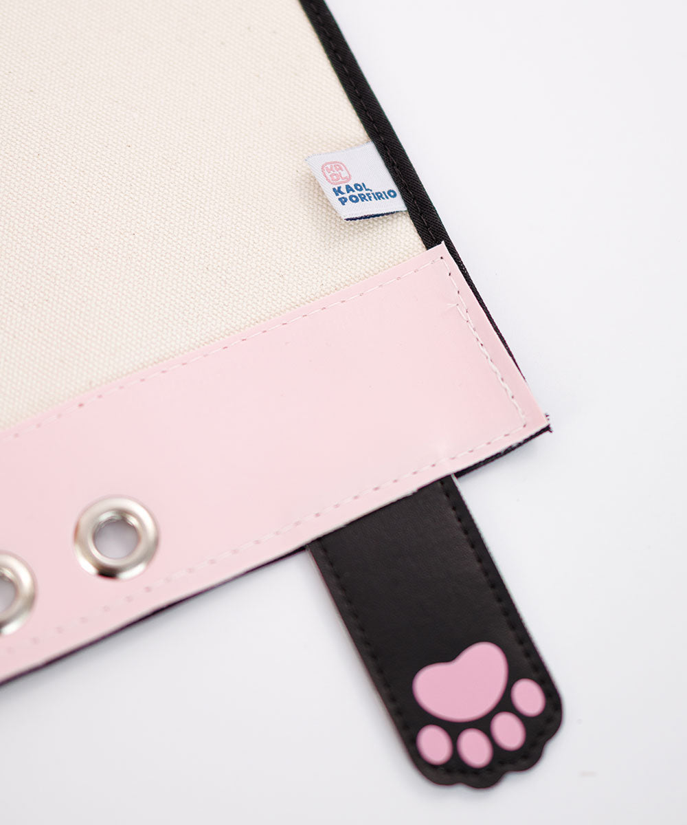Possui ilhós na parte inferior para pendurar chaveiros