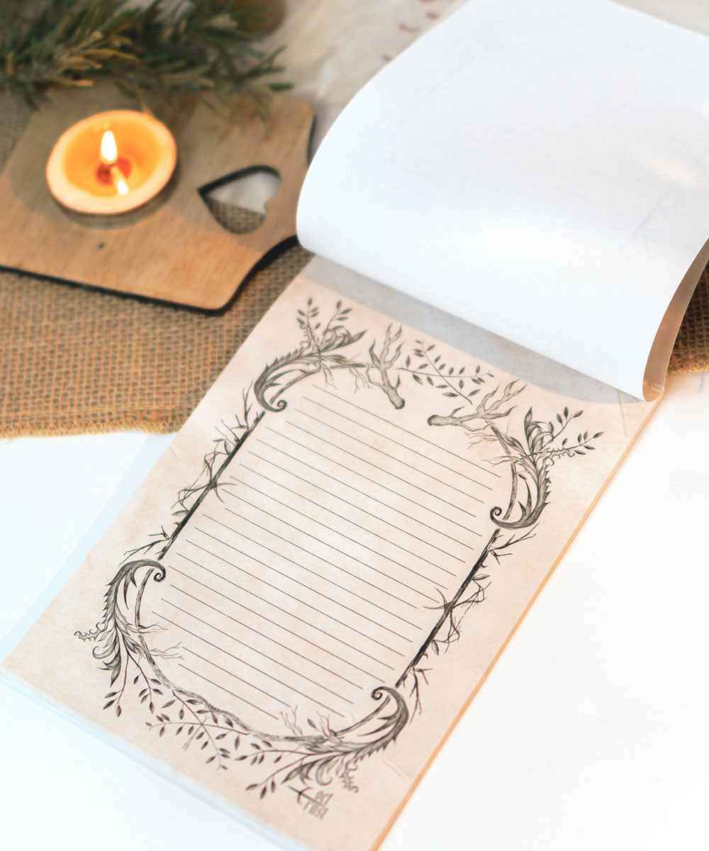 Cada bloco contém 25 folhas destacáveis medindo 15 x 21 cm, folhas pautadas e decoradas de faces simples.
