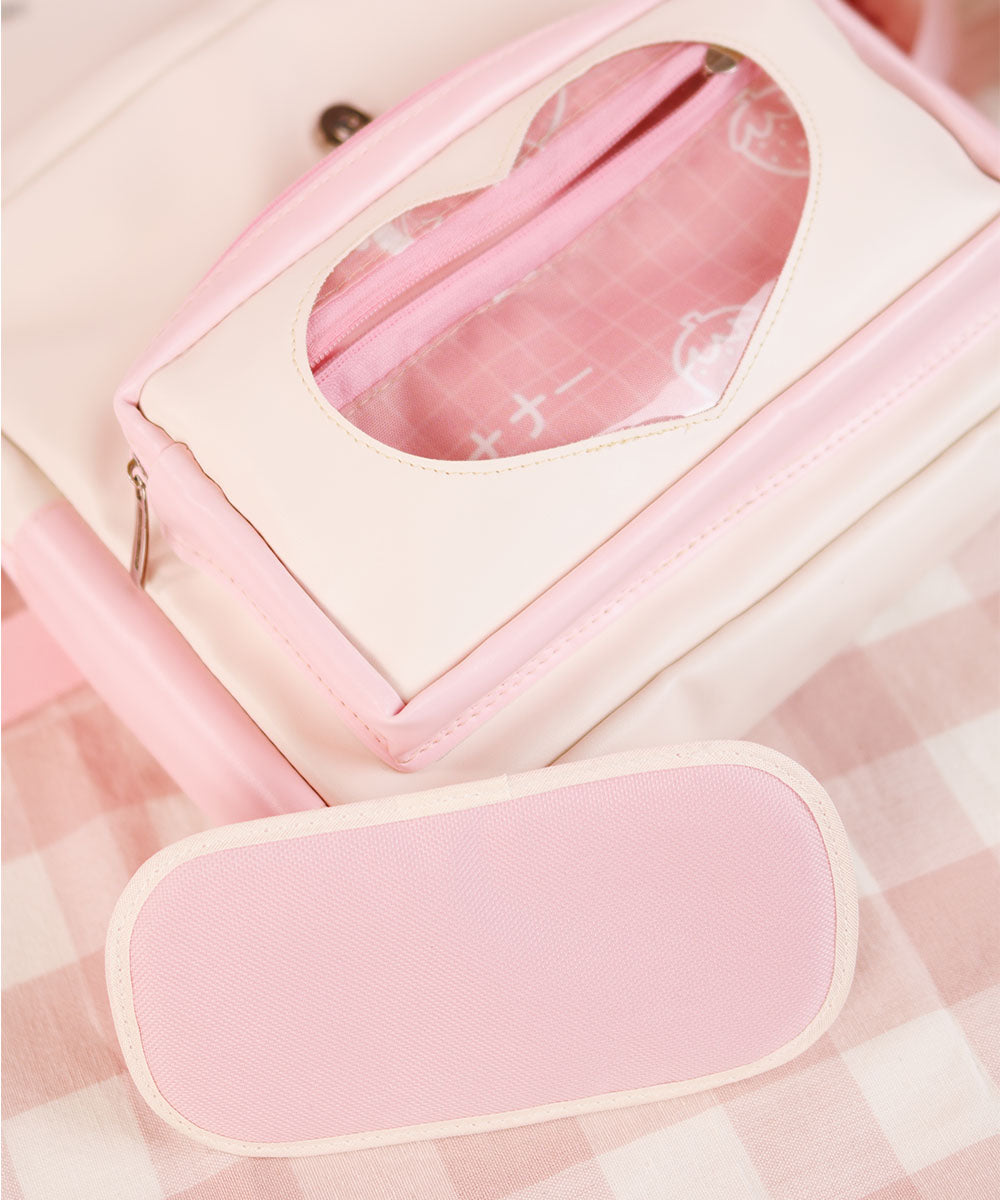 - Compartimento no bolso frontal para pins com janela de PVC cristal.