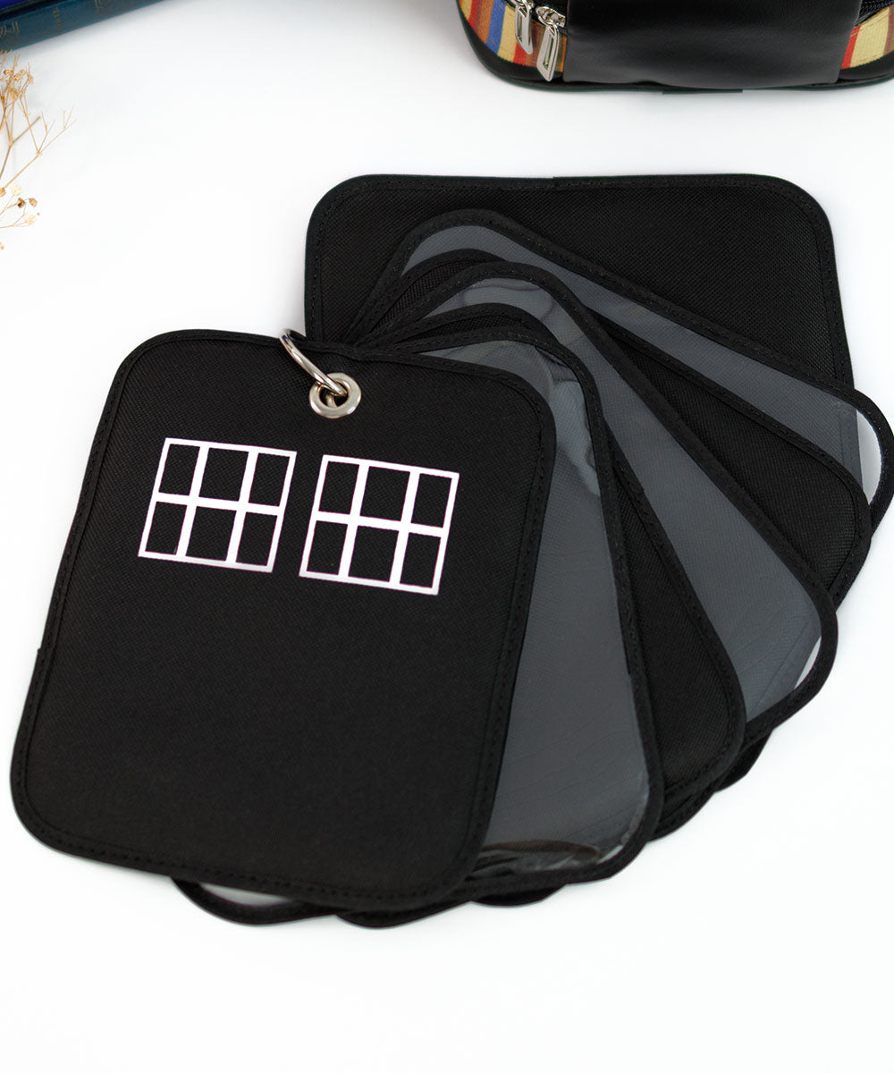 Possui 4 almofadas para pins 100% poliéster e três divisórias de PVC transparente