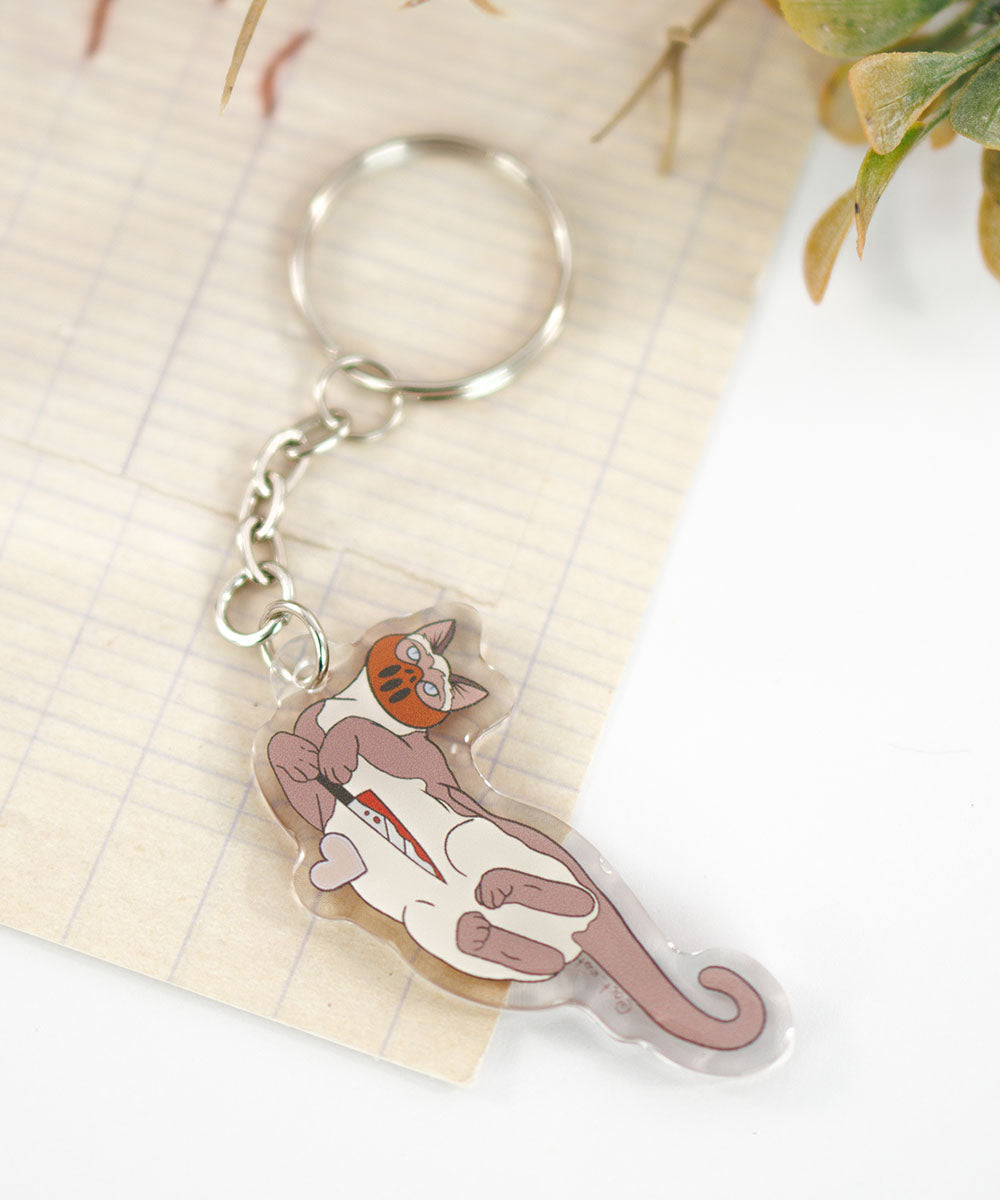 Chaveiro em acrílico com acabamento em resina cristal, que garante brilho extra e proteção à arte.