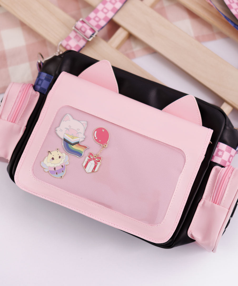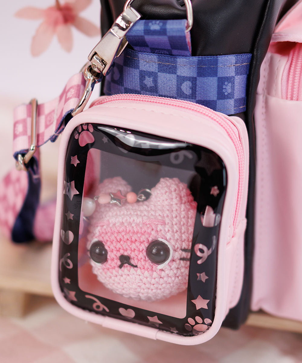 - Possui almofada dupla face interna para pins ou bottons com fechamento em zíper.