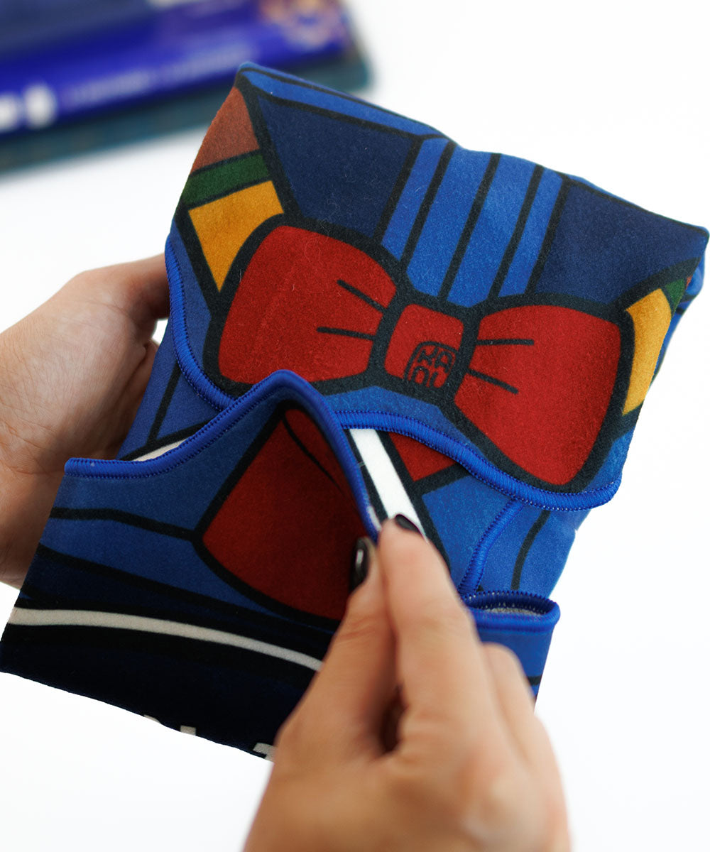 Produzido em tecido com tecnologia autocolante, ele adere a si mesmo, basta dobrar e ajustar para criar compartimentos que mantêm seus itens protegidos e no lugar. Não precisa de zíper, botão ou cola extra: é só envolver e fixar.