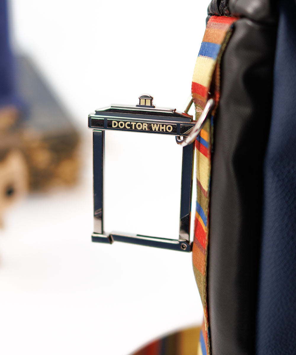 O Mosquetão de Metal Tardis é perfeito para estilizar com personalidade suas bolsas, estojos, mochilas ou até mesmo prender na roupa.