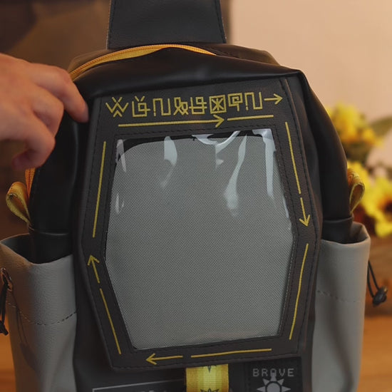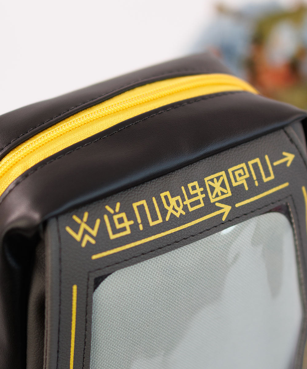 Além de possuir uma divisória segura para exibir seus pins, ela contém outros dois bolsos com zíperes, bolsos laterais com elástico, uma alça personalizada do tema.